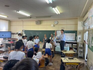 2025.9.19 5年生 全校生 フォートウェーン市からお客さんがいらっしゃいました 午前中、高岡市の姉妹都市であるアメリカのフォートウェーン市から、高岡市との姉妹都市友好活動を中心になって進めておられるSuzi Hanzel先生とSusannah Arthur先生が、木津小学校を訪問してくださいました。 ☟先日ビデオレターを送ったばかりの5年生の教室でご挨拶していただきました。 ☟たくさんのおみやげをいただきました。 ありがとうございました!