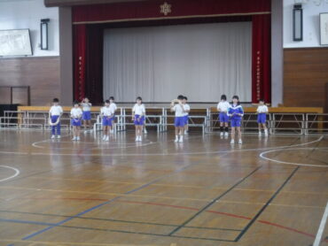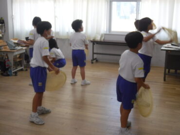 2025.9.24 4年生 学習発表会に向けて、練習を頑張っています~4年生~ 4年生は、学習発表会で民舞を披露します。 グループに分かれて、リーダーが中心となって、動きや隊形に気を付けて練習に取り組んでいます。