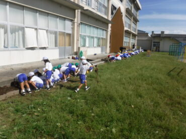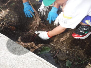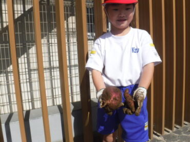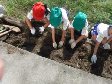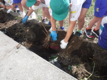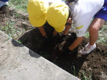 1年生が、5月に植えたさつまいも掘りを行いました。