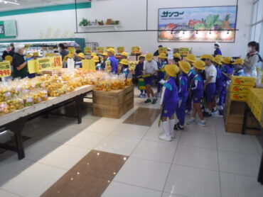 午前中、3年生が社会科見学で、校区にあるサンコー木津店を訪問しました。