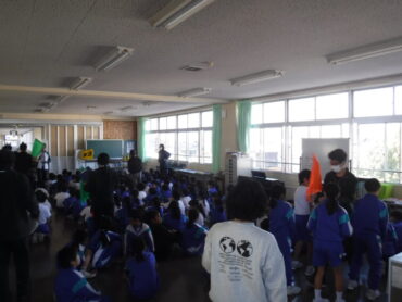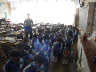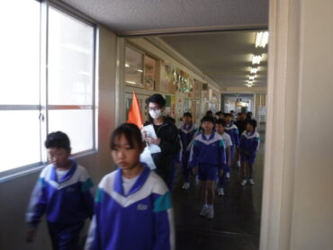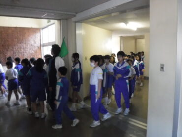 2025.11.12 全校生 洪水を想定した避難訓練を行いました 洪水を想定した避難訓練を行いました。 木津小学校周辺は、最悪の場合、5.6mの浸水と想定されています。 放送の指示をよく聞いて、3階にすばやく避難しました。