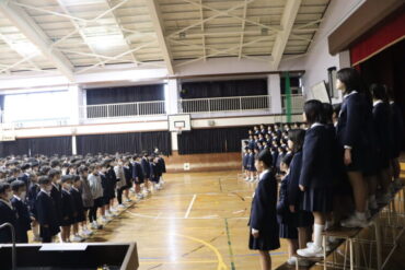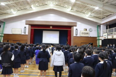 2025.12.1 NEW 全校生 第44回創校記念式 2限目に、創校記念式が行われました。 木津小学校は、昭和57年4月に開校しました。同12月1日に、すべての学校施設が完成し完工式が行われたことから、この日が創校記念日と定められました。 ☟校長先生のお話に耳を傾けています。 ☟6年生全員で、木津小学校のなりたちを紹介する呼びかけを行いました。 ☟全校児童で、学校の歌「こぶしの花を校章に」を歌いました。 ☟最後に、校歌を斉唱して式を締めくくりました。