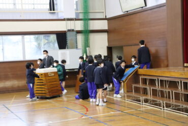 1月から、集会等の準備・片付けは、6年生からバトンを受け継ぎ、5年生が担当することになりました。協力して、一生懸命頑張りました。