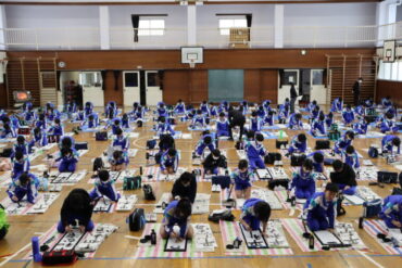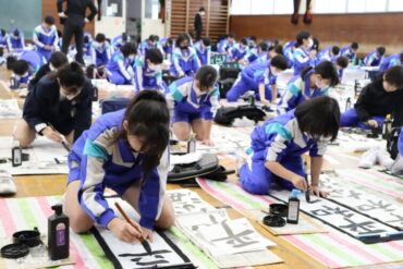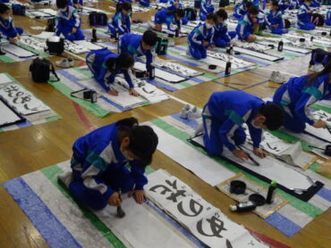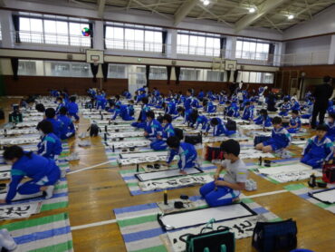 2026.1.8 全校生 書初大会 始業式の後は、書初大会を行いました。 3年生以上は、体育館で一斉に取り組みました。 1・2年生は、教室で取り組みました。 練習の成果を十分に発揮することができました。