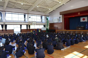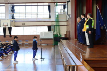 2026.2.20 4年生 5年生 6年生 交通安全少年団入退団式 南星交番の署長さんや地域の交通安全を推進しておられる方々をお迎えして、交通安全少年団入退団式を行いました。 ☟交番署長さんのお話 ☟交通安全協会の方から、記念品をいただきました。 ☟退団する6年生と、新たに入団する4年生の代表児童があいさつしました。 6年生の皆さん、これまで、ありがとうございました。 4・5年生の皆さん、木津っ子一人一人が「自分の命は自分で守る」という意識をもつことができるように、下級生のよりよい手本となりましょう。