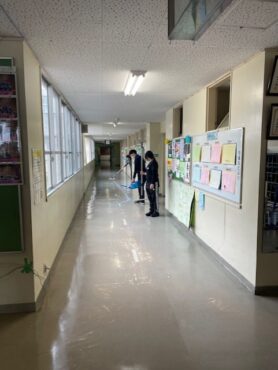 今日は、放課後、子供たちが帰った後、先生方で廊下と階段のワックスがけを行いました。ピカピカの廊下になりました。卒業式に向けて、先生方も、頑張っています!