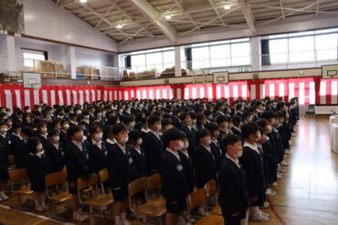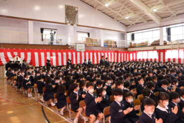 ☟当日は、式場に入ることができない1・2年生も参加して、6年生を迎えます。